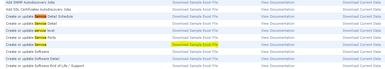 - Head to the Import Export Screen and Download the “Services” sample Excel file: