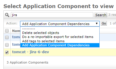 - If you’d like to go one step further, also choose “add application component dependencies” and create a new top-level application component that groups multiple components together as dependents: