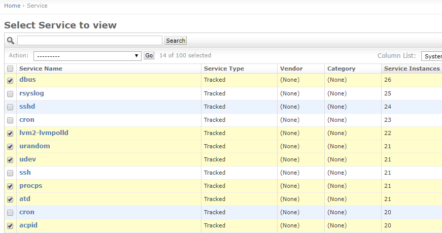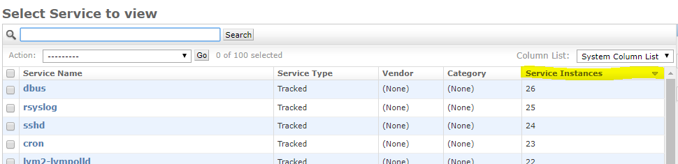 - Do this by clicking on the highlighted “Service Instances” column header twice, until the sort indicator arrow points downwards:
