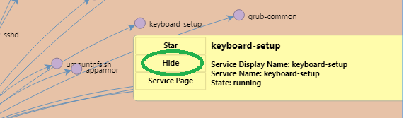 - From either views, hover over additional services that show unimportant connectivity and select “hide” option: