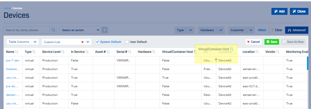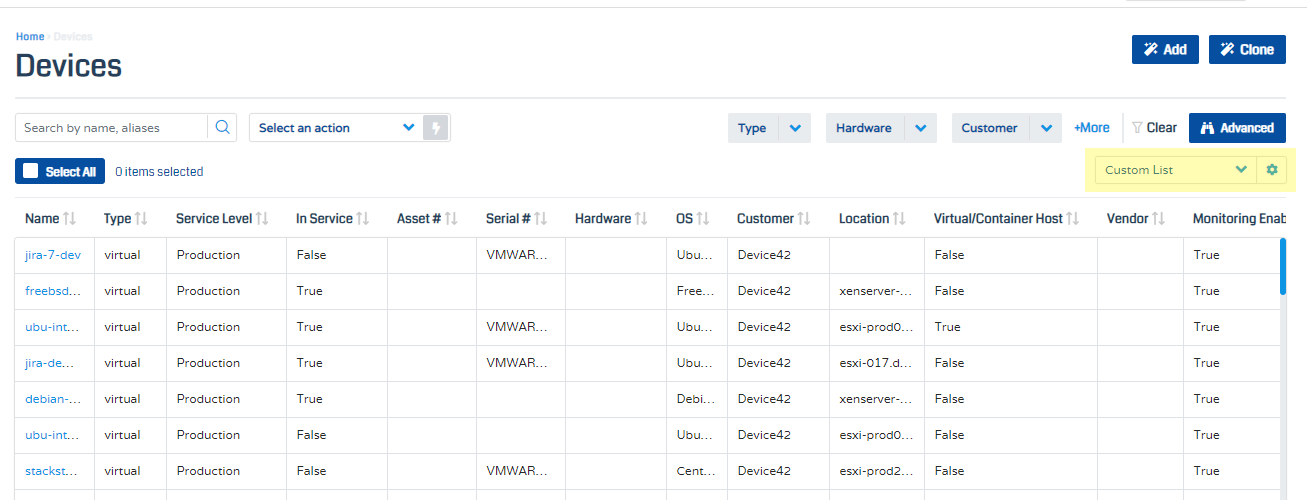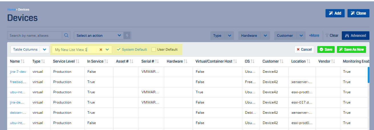 The v17.04.01 Device42 main menu includes a Preview option for a new All Devices list page. Device42 will soon migrate to our new list page architecture for devices. As such, we are consolidating all the various old device list pages into one single high-powered list page that comes packaged with all the features present in the old version and a few more awesome features like advanced search. In this release, we are exposing the Preview to everyone, and in v17.05.00, we will complete the conversion. All device list pages references will then forward to the new architecture. We will temporarily still allow you to visit the legacy page for one additional release before we completely remove the legacy pages in v17.06.00. Enjoy!